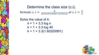 Class Frequency 2 10 1 11 19 3 20 28 9 Class Frequency 2 - 10 1 11 - 19 3 20 - 28. The number of classes k k k is calculated using the following formula. Mode Lh fmf1 fmf1fmf2 L h f m f 1 f m f 1.
